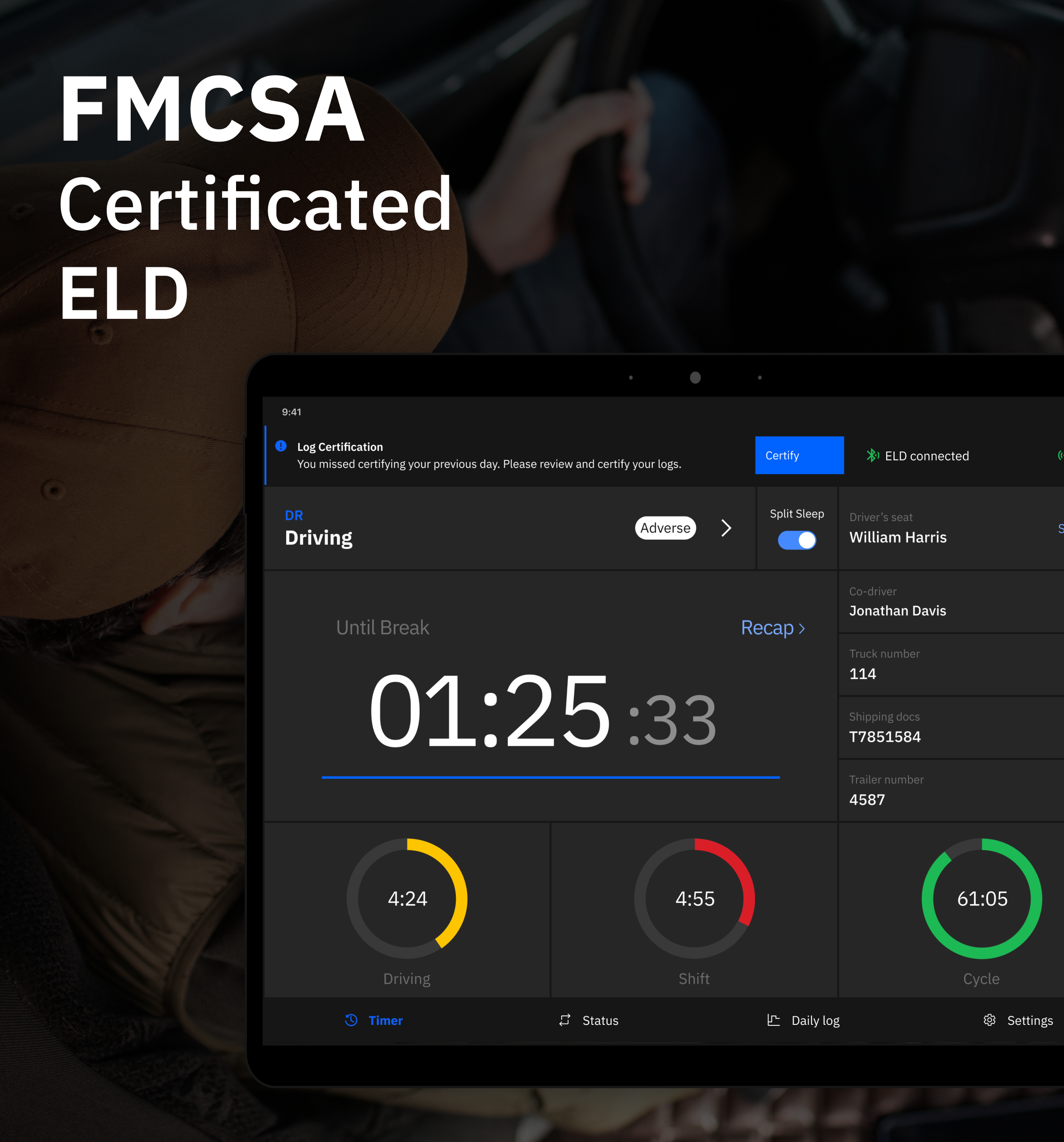 “The platform helps me focus on driving instead of paperwork. HOS is easy to track, DVIRs are simple to complete, and I feel more confident during inspections.”